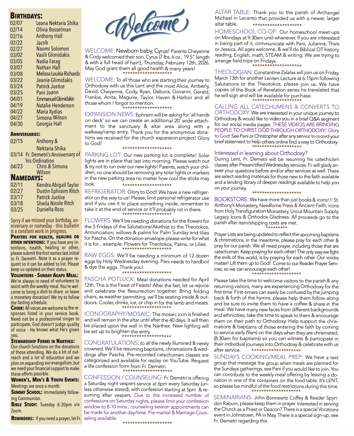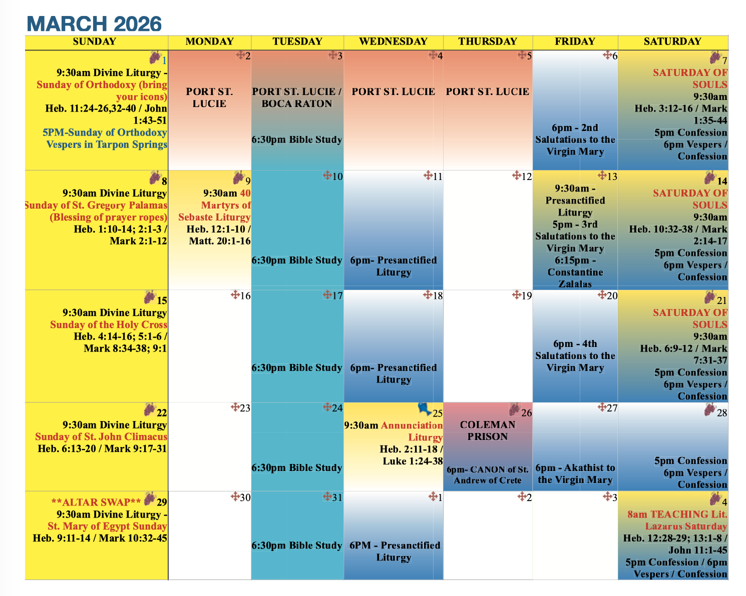 Saints and Feasts Commemorated
